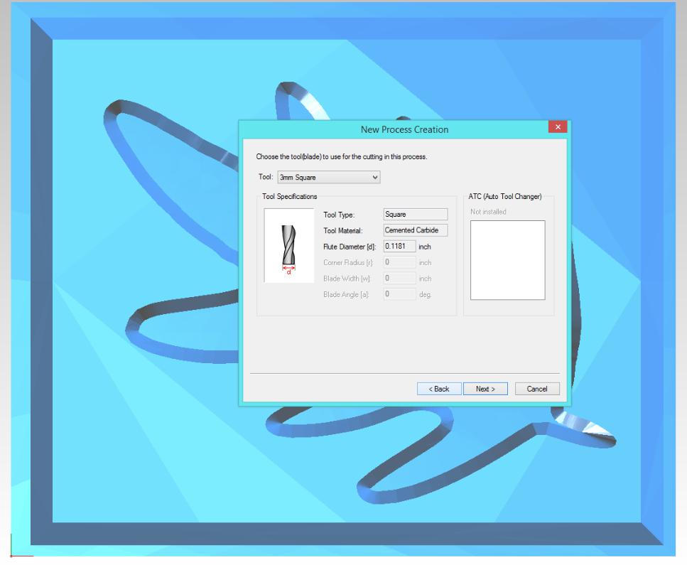 - Then select the tool/blade for the cutting and click next.