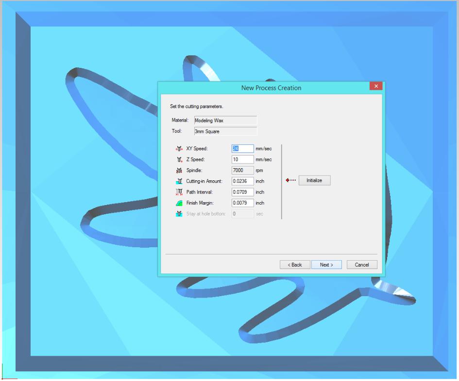 - Then set the cutting parameters and press next.