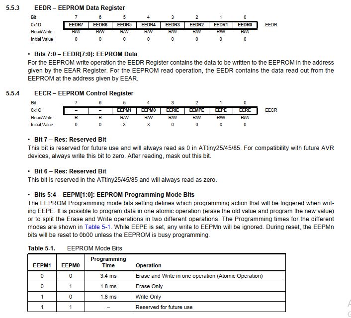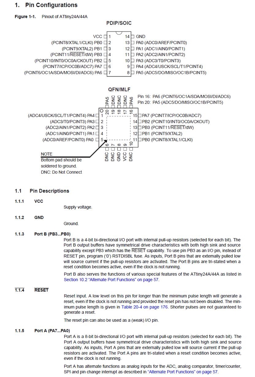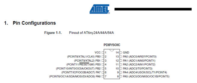 Before programming my hello board, I read the Atmel ATTiny 25/45/85 datasheet. The datasheet contains a lot of information useful to conceive your board like :