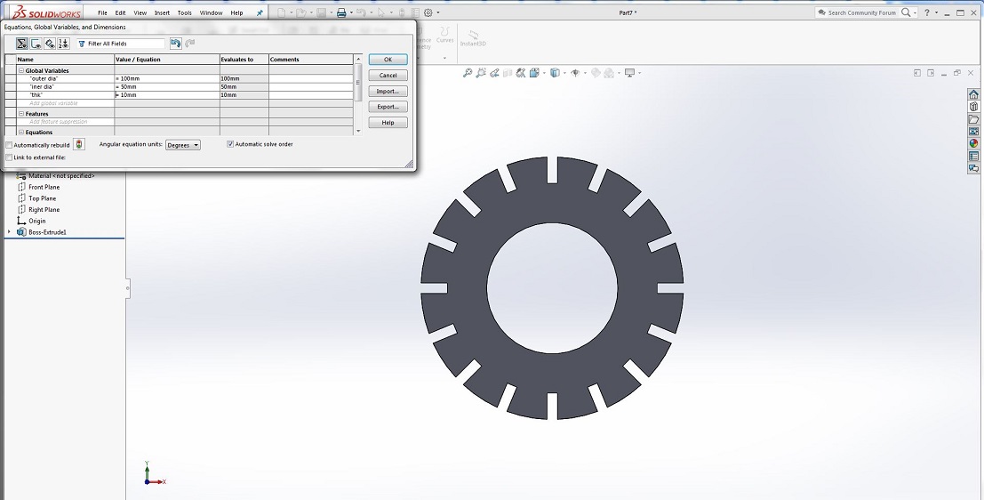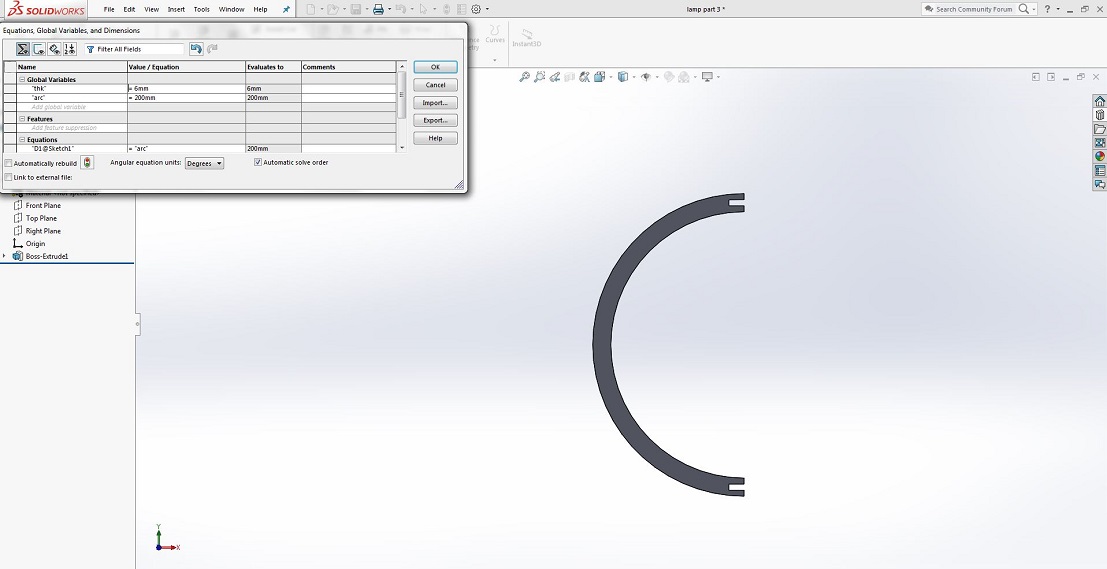 •I want to make gear but it is parametric but not a press fit kit,so i skip that idea and make a parametric press fit kit. So i decided to make a Stool, i struggled five days to make a box, during making Stool design i got some issue in linear pattern whick i could not solve. Finaly i decided to make a lamp.