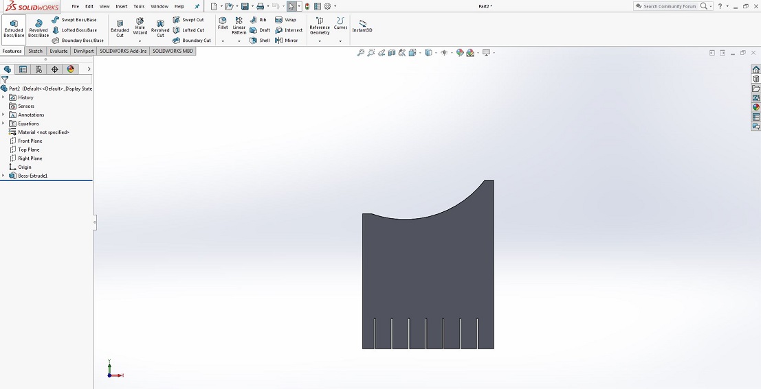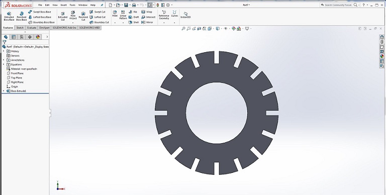 •Now for making it 3D I use "Extruded Boss/Bass" tool and select 4mm as extrude value.
