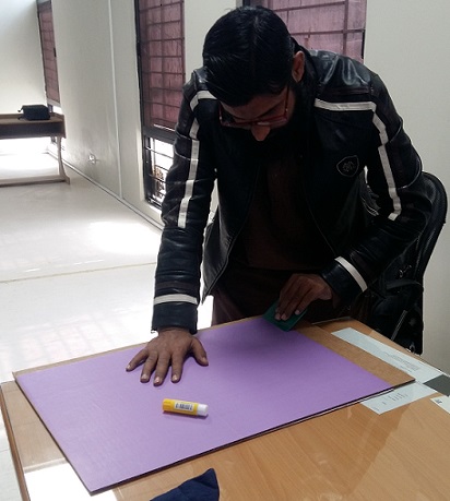 •Before laser cutting of my lamp, I paste color paper sheet on both sides of cardbaord.