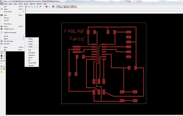 when png file was generated, open it in paint for making traces and outline file for generating .RML file then further process in Roland SRM-20 Milling machine
