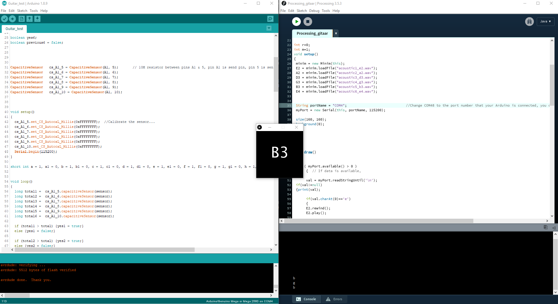 This piece of code is then repeated for the A2, D3, G3, B3 and E4 (which i called f in the serial line print).