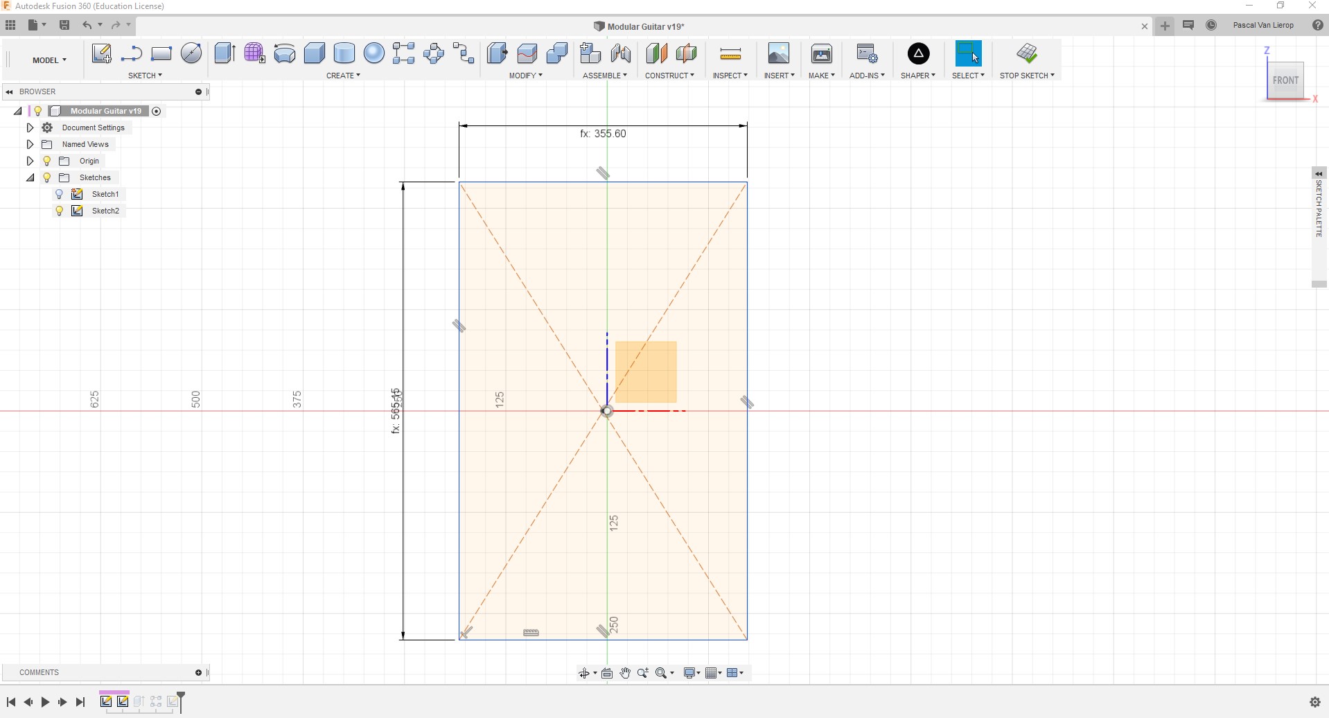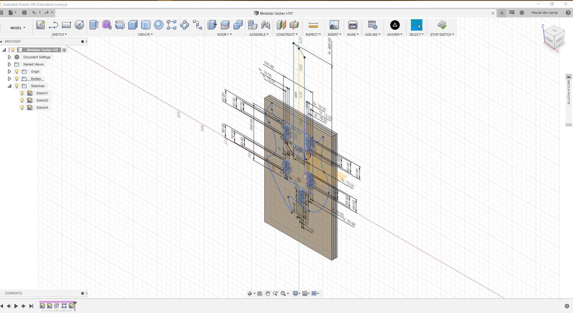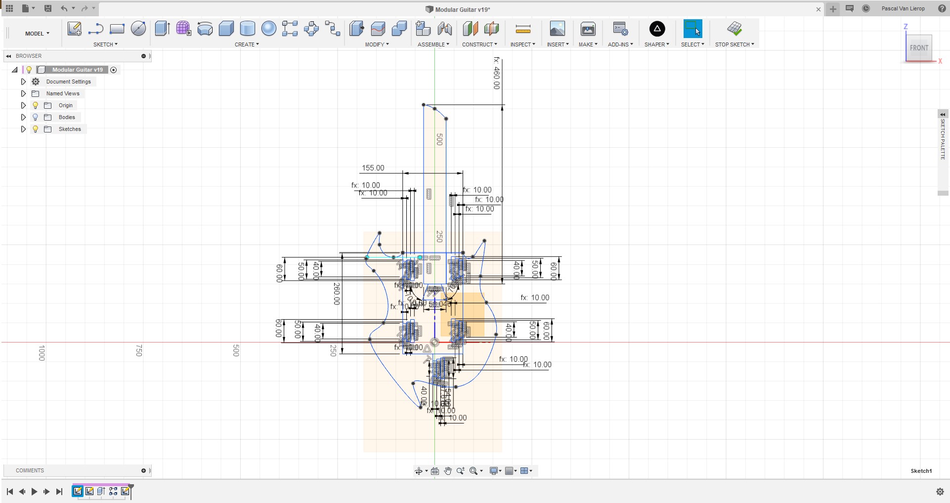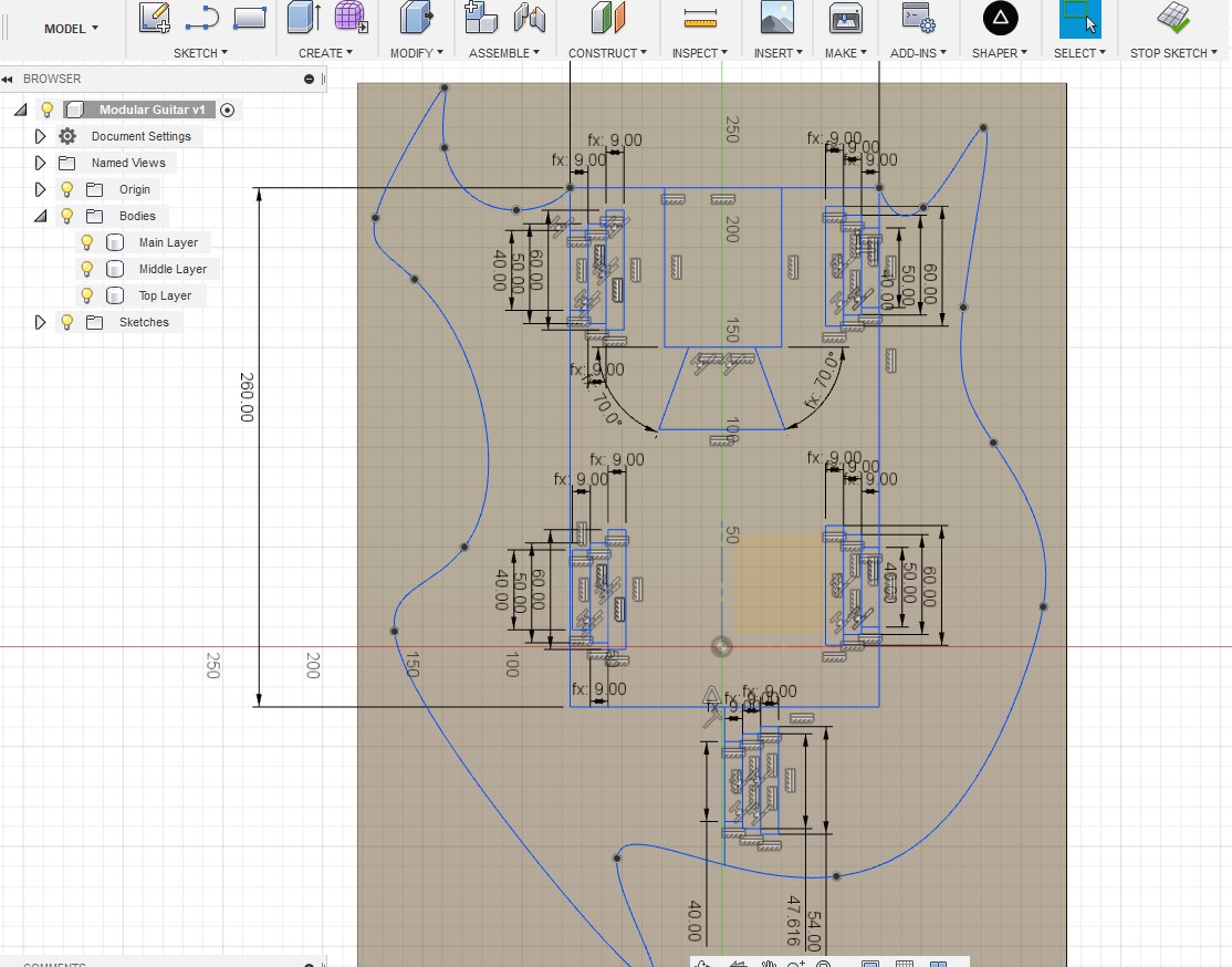 In order to draw the guitar, I first tried to shape it, but quickly realized that I will need the dimesions for the milling.