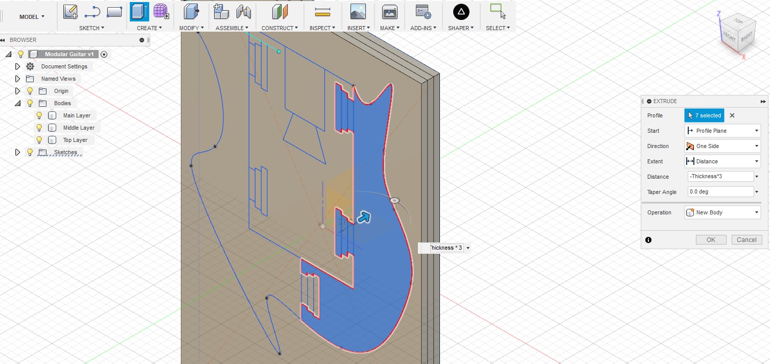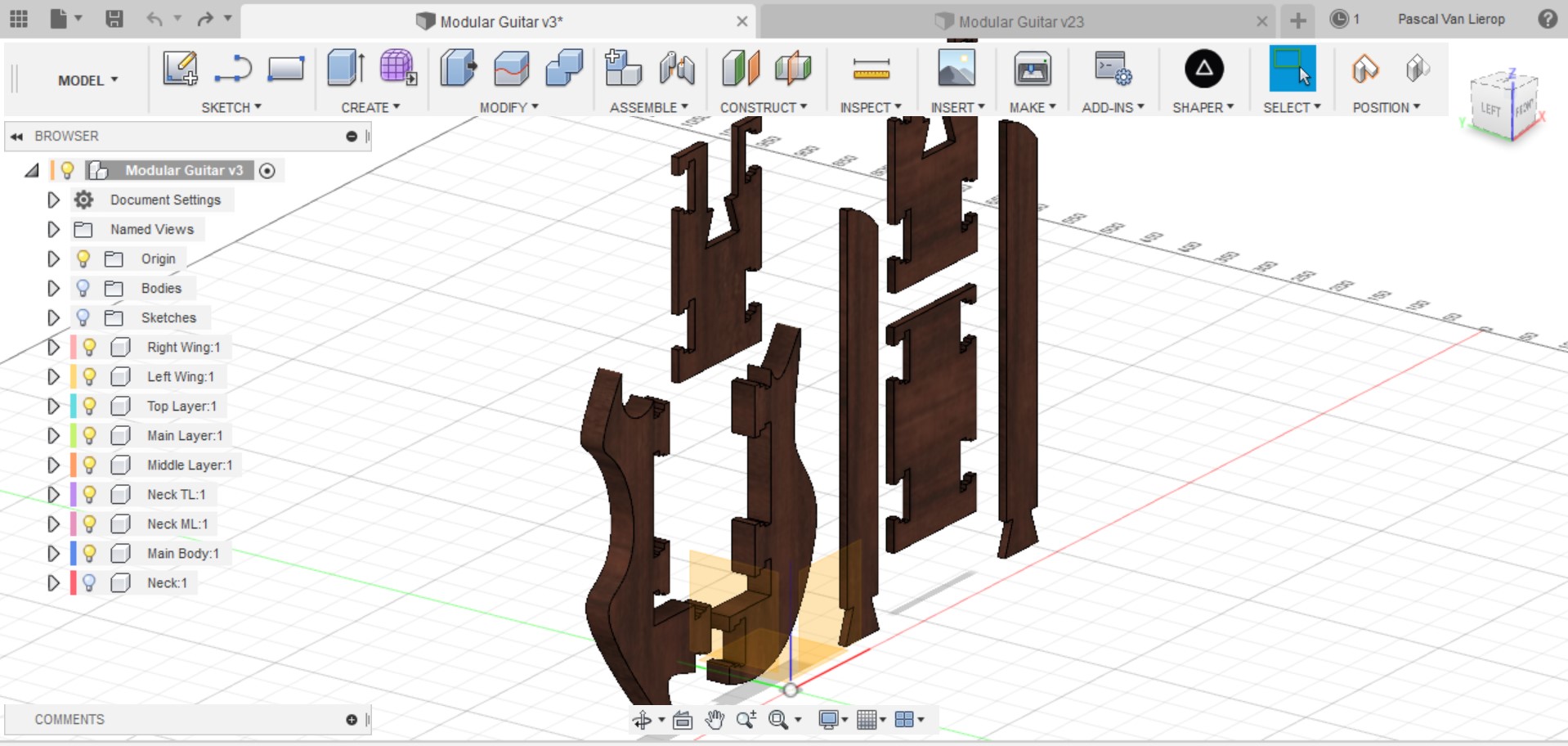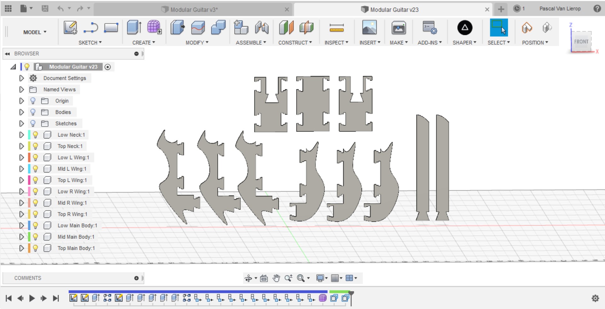 In order to draw the guitar, I first tried to shape it, but quickly realized that I will need the dimesions for the milling.