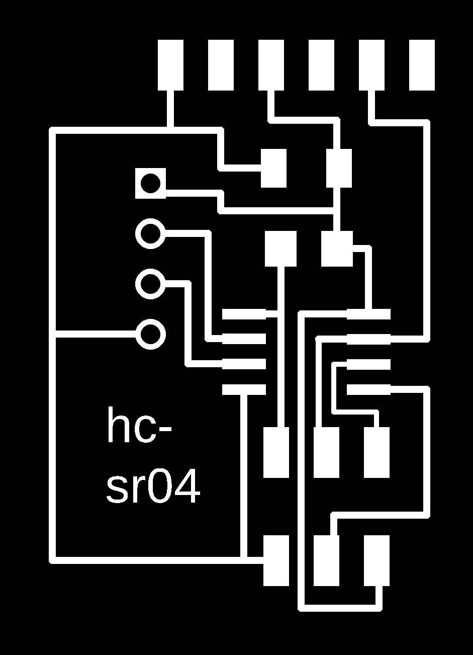 I made a small board to solder an Attiny45, 10K resistor, 1uF capacitor ISP and ftdi connectors, and the ultrasonic distance sensor.
