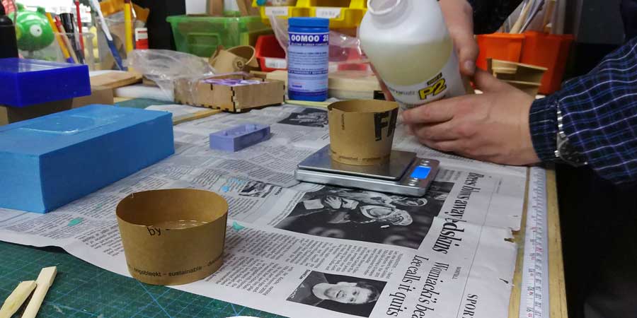 The amount to use is 1:1 for both components, and remember that its pot life is very short so you have a couple of minutes before it gets hard, so prepare in advance your working are and your molds.