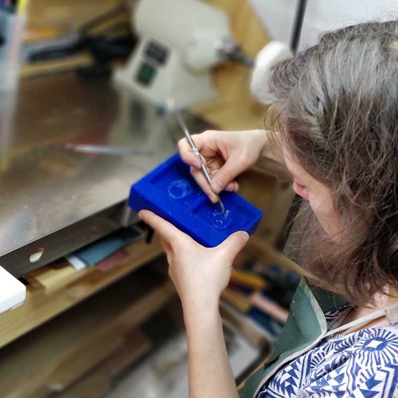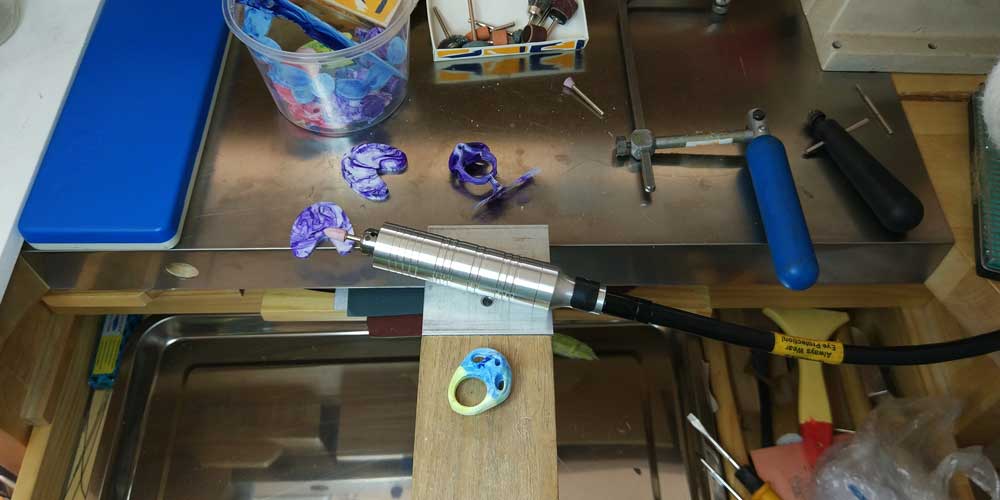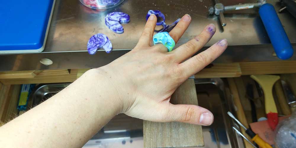 I did some tests in my ring mold using dry stone and I added blue pigment to the mix.