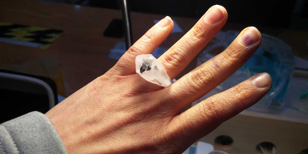 The idea behind the tiny pieces of rock, is that you can keep them once the ring melts, maybe I could replace them for tiny gold pebbles and develop this into an ephemeral collection in the future.