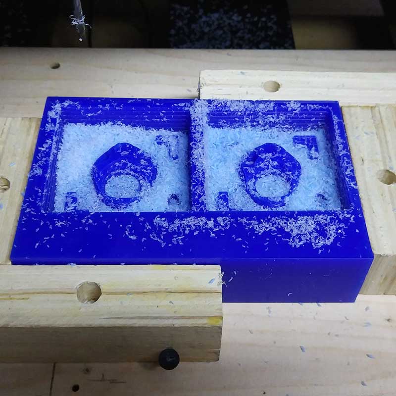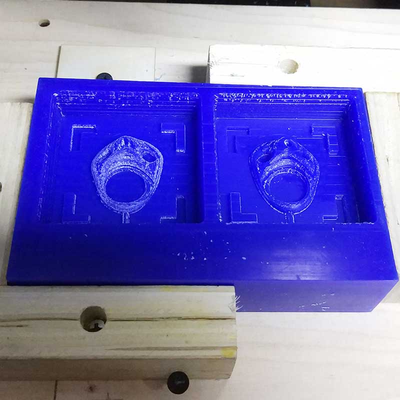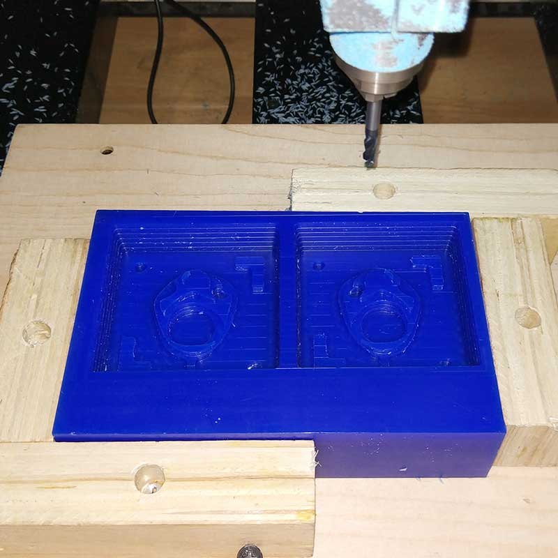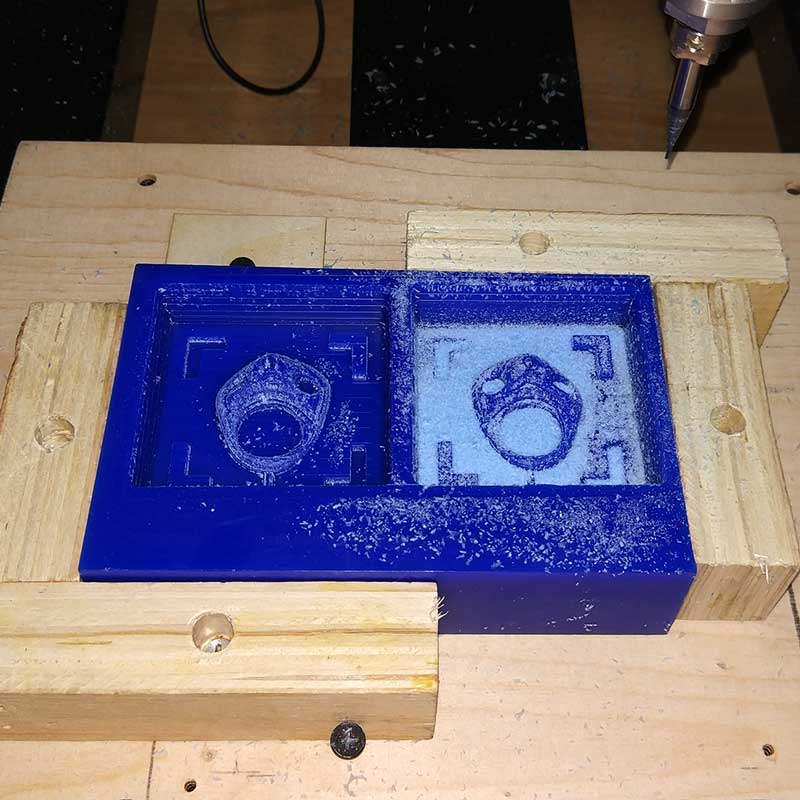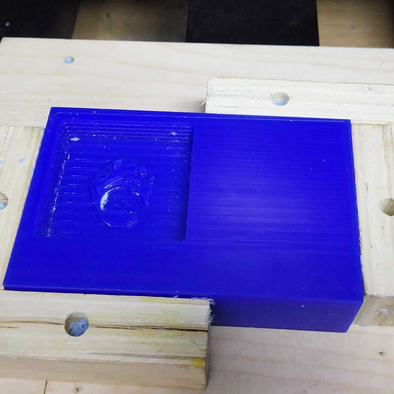 So the task of this week was to design a 3D mold using the stock material provided (castable wax), mill it with the CNC machine and use it to cast parts.