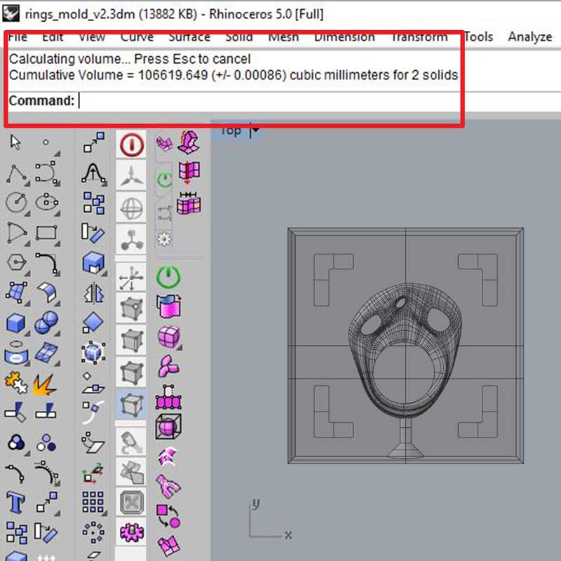 I used Rhinoceros and calculated I would be needing 106grams of silicone.