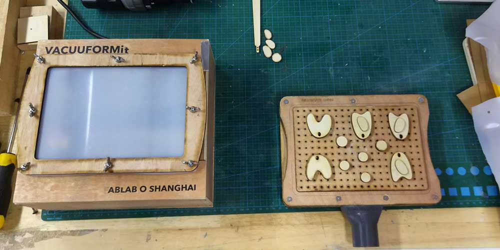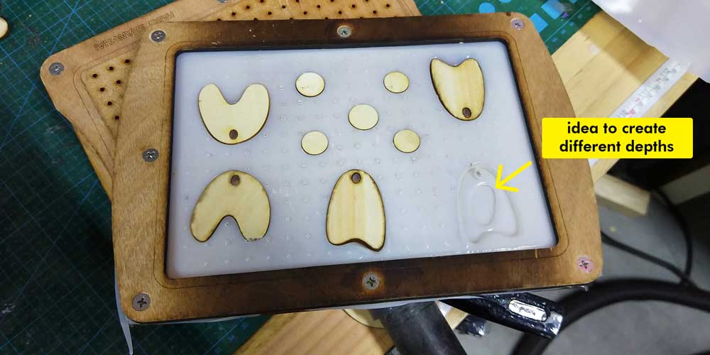 I really liked working with resin, so I went crazy and decided to do some other molds using laser cutting and vacuum molding. =P