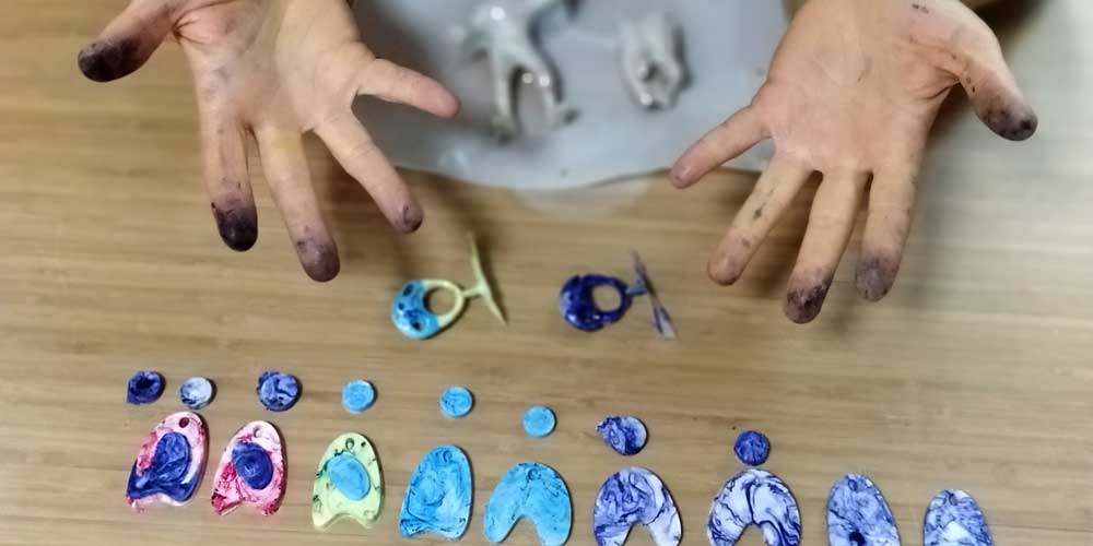 pigments that are sometimes added into pottery pieces that create this astonishing marble effect, and of