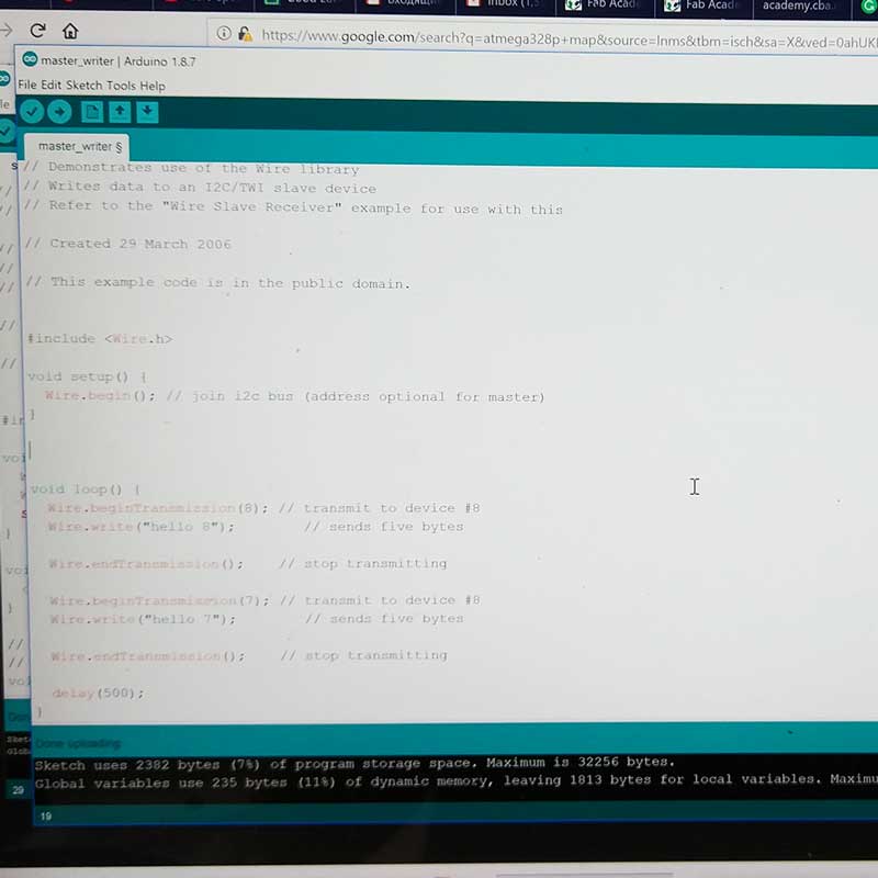 Arduino IDE "wire" examples. Also, this week our classmate Flavie did the groupal