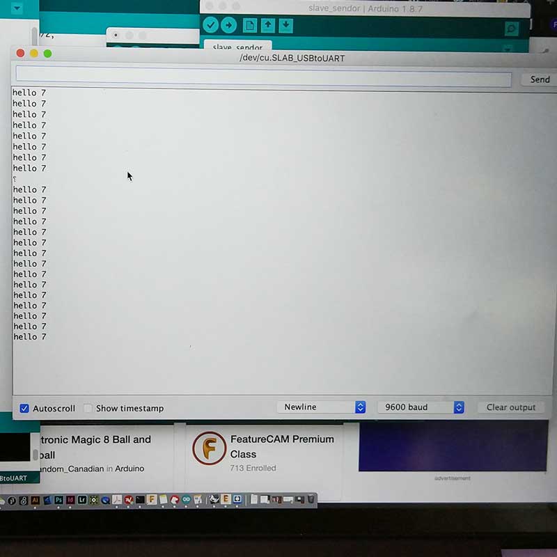 These series of photos show (from the left) the master's code, and the slaves serial monitor message that was displayed when uploading the codes and connecting them.
