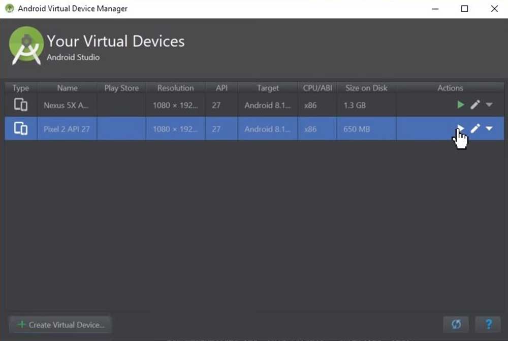 After doing this set up, you will be able to activate the emulator, which is a virtual representation of