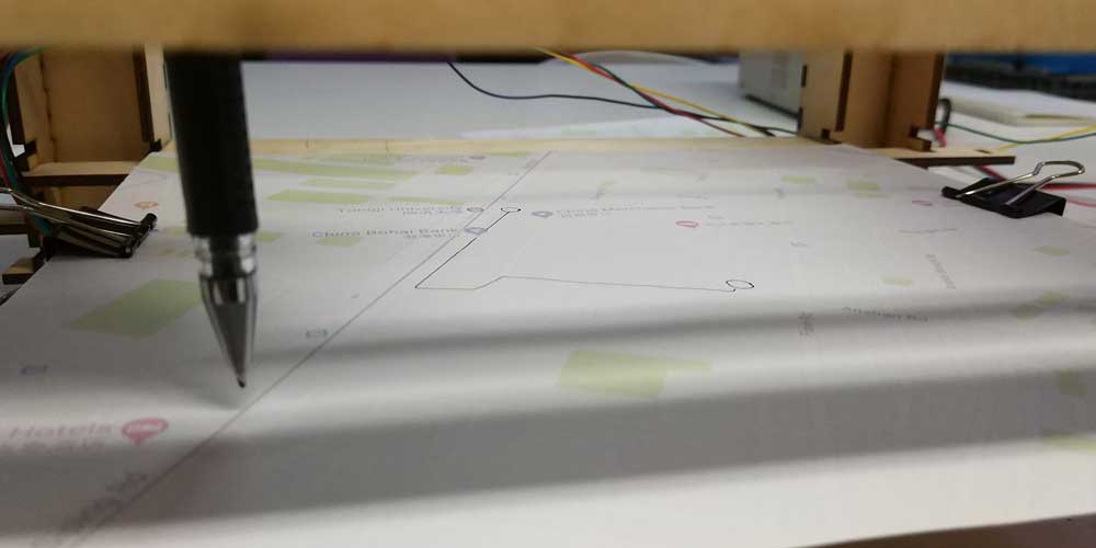 We thought the plotter could have an area were the user inputs the variables by touching a path or surface, this was an initial idea for the part of programming and interface. Our final outcome doesn't integrate this idea yet but we may develop it further if we have time afterwards.