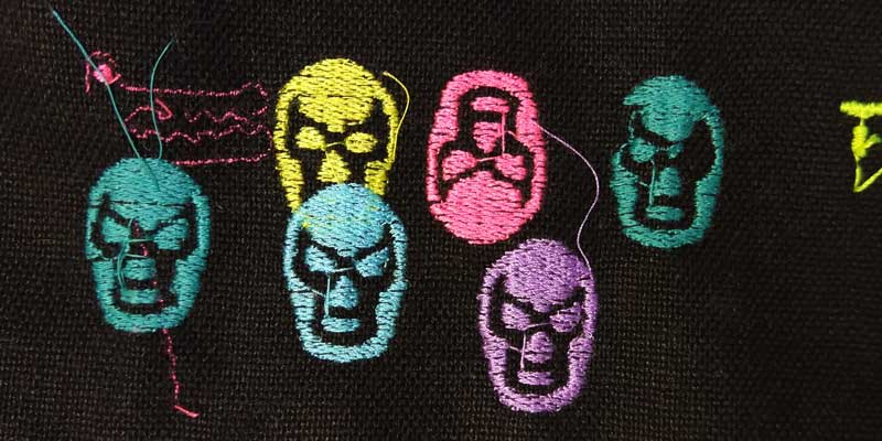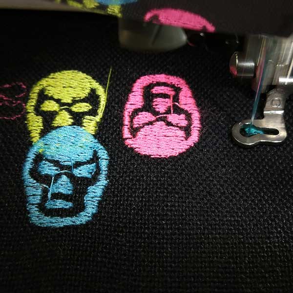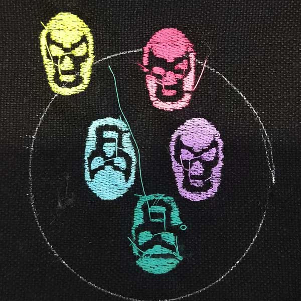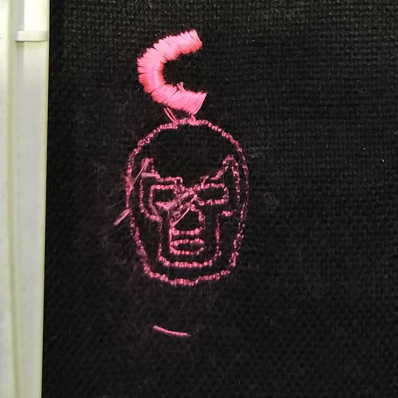 During my first trial I only did the outline of the mask. At first it seemed to look ok, but the stitches didn't come out really well, and you don't want to see the back it was a mess of threads: