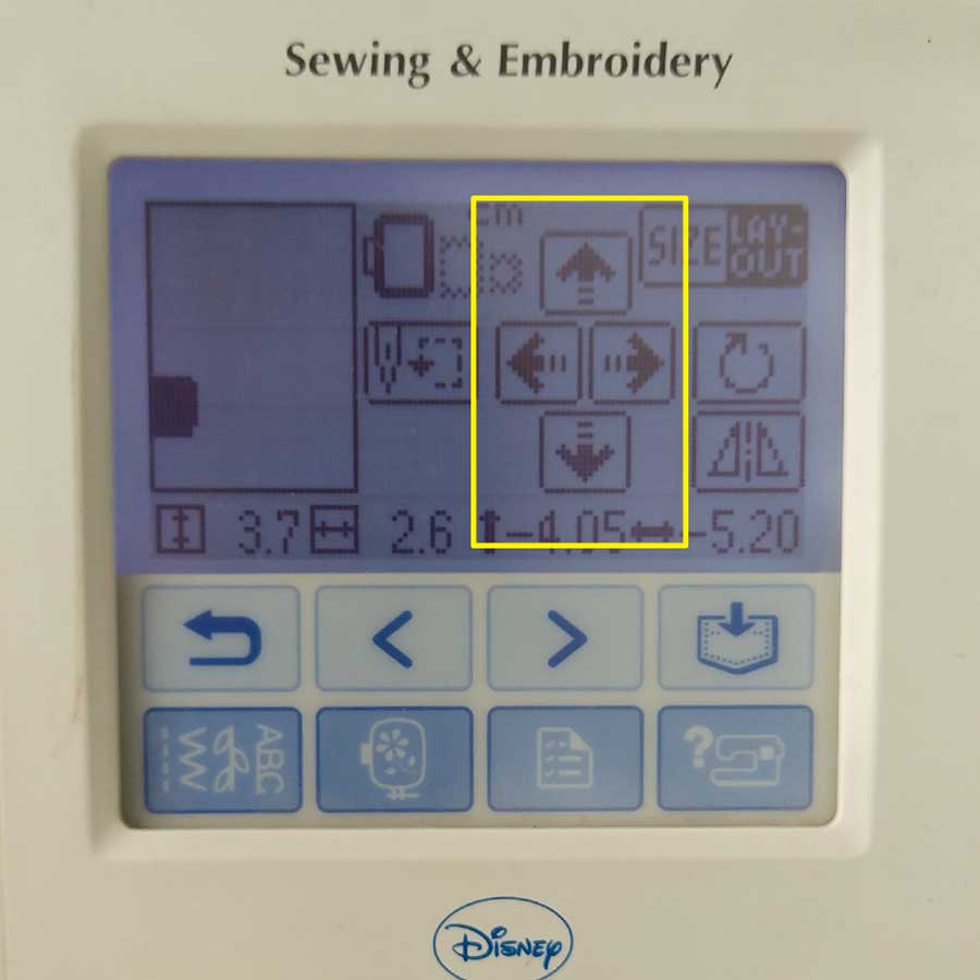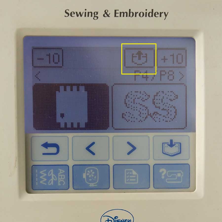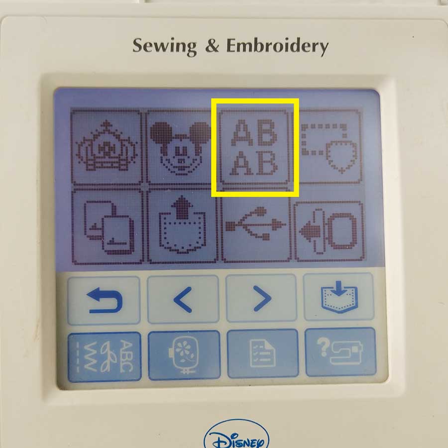 Select your .pes file inside the USB icon. Here you can select as well symbols or letters from the library: