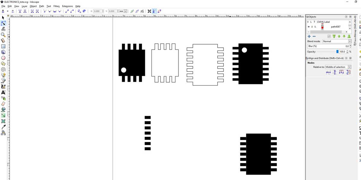 I thought I could use the vectors I had already designed on Adobe Illustrator but when I opened the file on InkScape and ran the InkStitch extension, for some reason it was not generating the params stitches and it kept loading without response, so I decided to re-draw from scratch the graphics of the AtTinys to use on the embroidery machine.