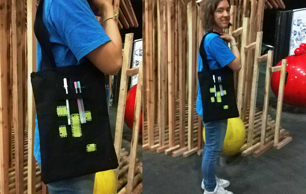 After drawing the graphics I did a few tests on the fabric I would use for my tote bag, but this time I