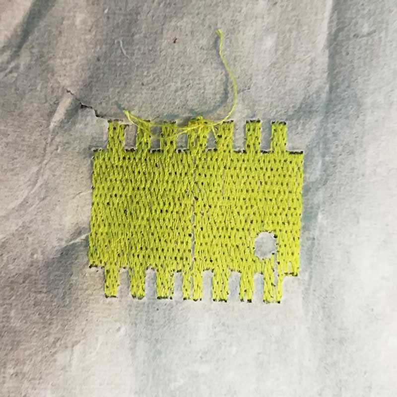 After running several tests in different fabrics and a fail attempt to use paper as material in my frame, and running several times issues like the lower bobbin got stuck (because the thread I was using was too thick), or the upper thread came out (that happened like 10 times or more) I decided to draw my own graphics and test them out.
