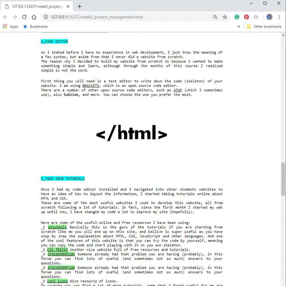 I just wanted to add that there are other ways to build websites, you can use html templates that are available online, you can use Bootstrap templates as well, in fact I first decided to use a Bootstrap template, but then I realized it was more confusing for me as I didn't understand half or more from the code, this is why I abandoned the idea of using Bootstrap. Other ways to create a website is using another language called MkDocs, let's say it is a simplfied version of html language.