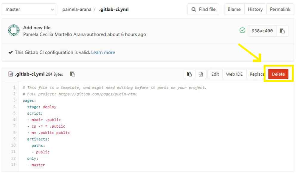 What you need to do is go to your GitLab repo find the file .gitlab-ci.yml delete it, then create