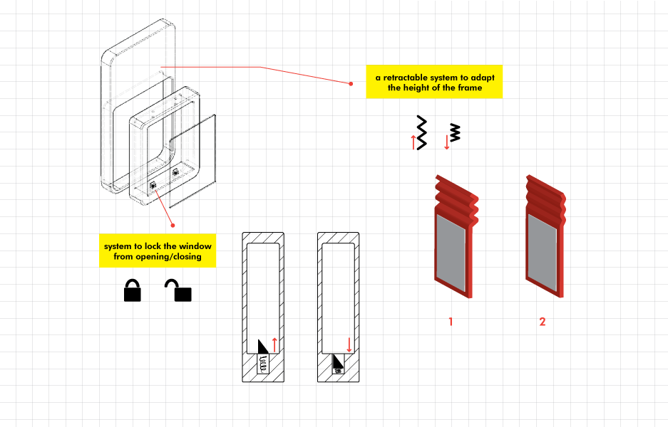 mechanism that helps the user to adapt the frame of the window (as not all the window holes are the
