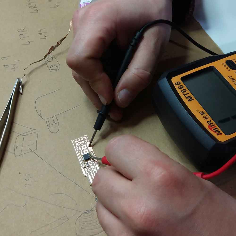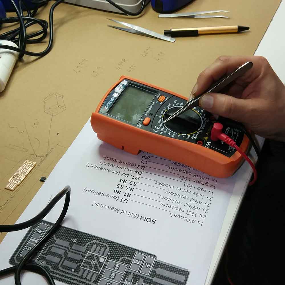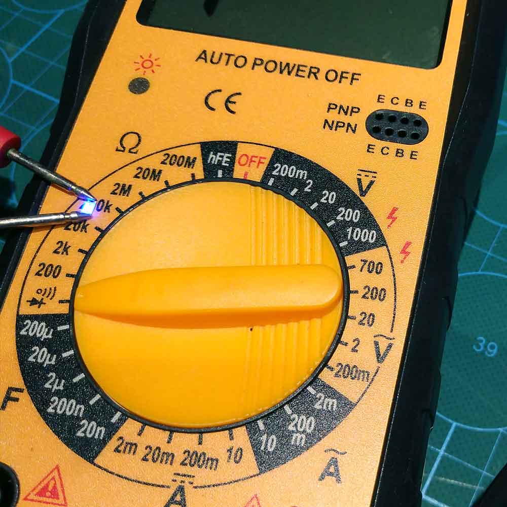 When soldering the LEDs it was tricky to find the correct position to solder them, but using the multimeter you can find the "ground" and locate the LEDs in the correct position.