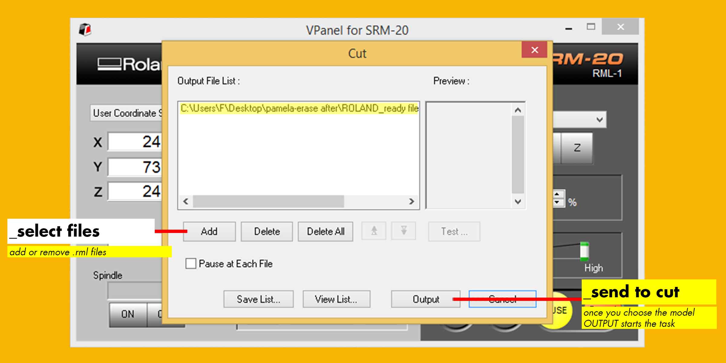 up all the necessary information to cut the file; such as machine speed, reference for origin, material