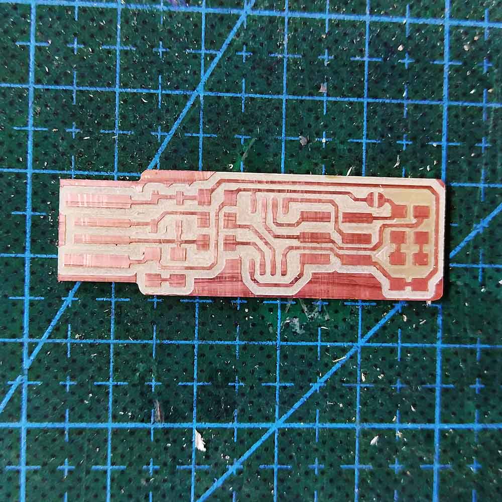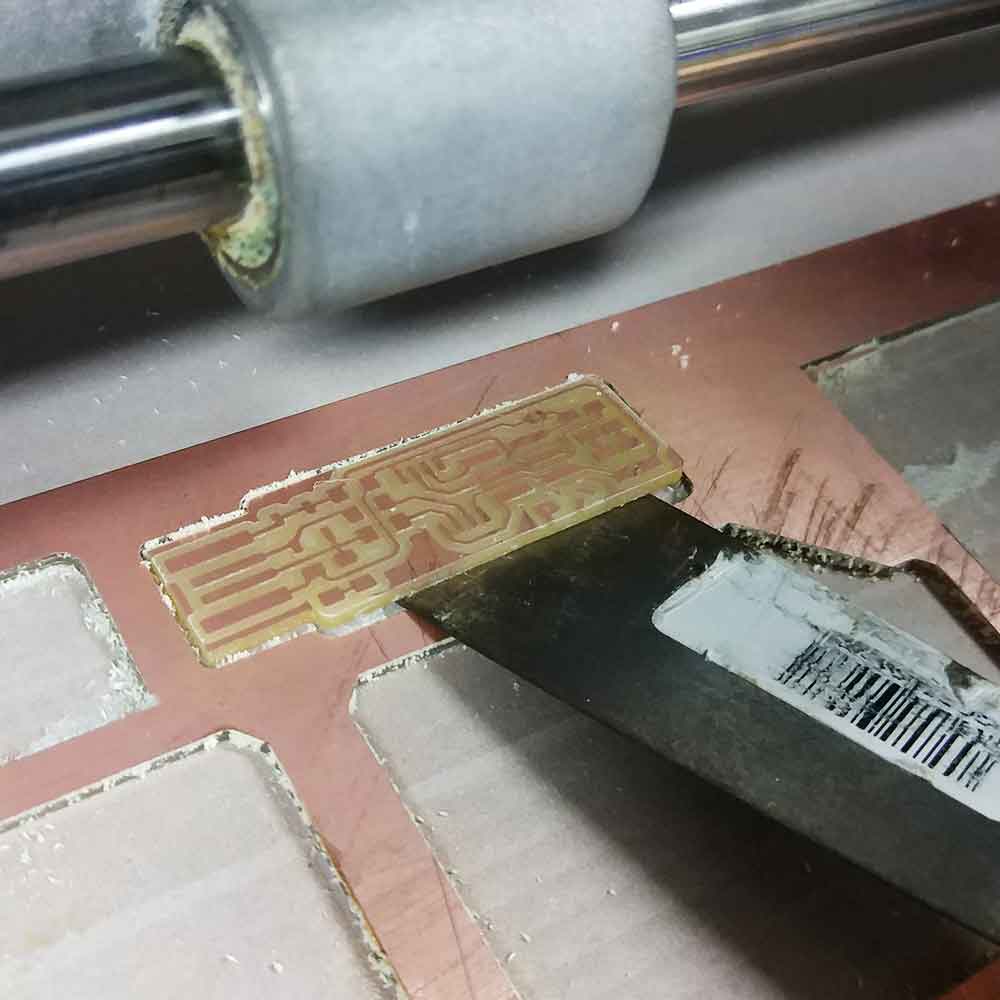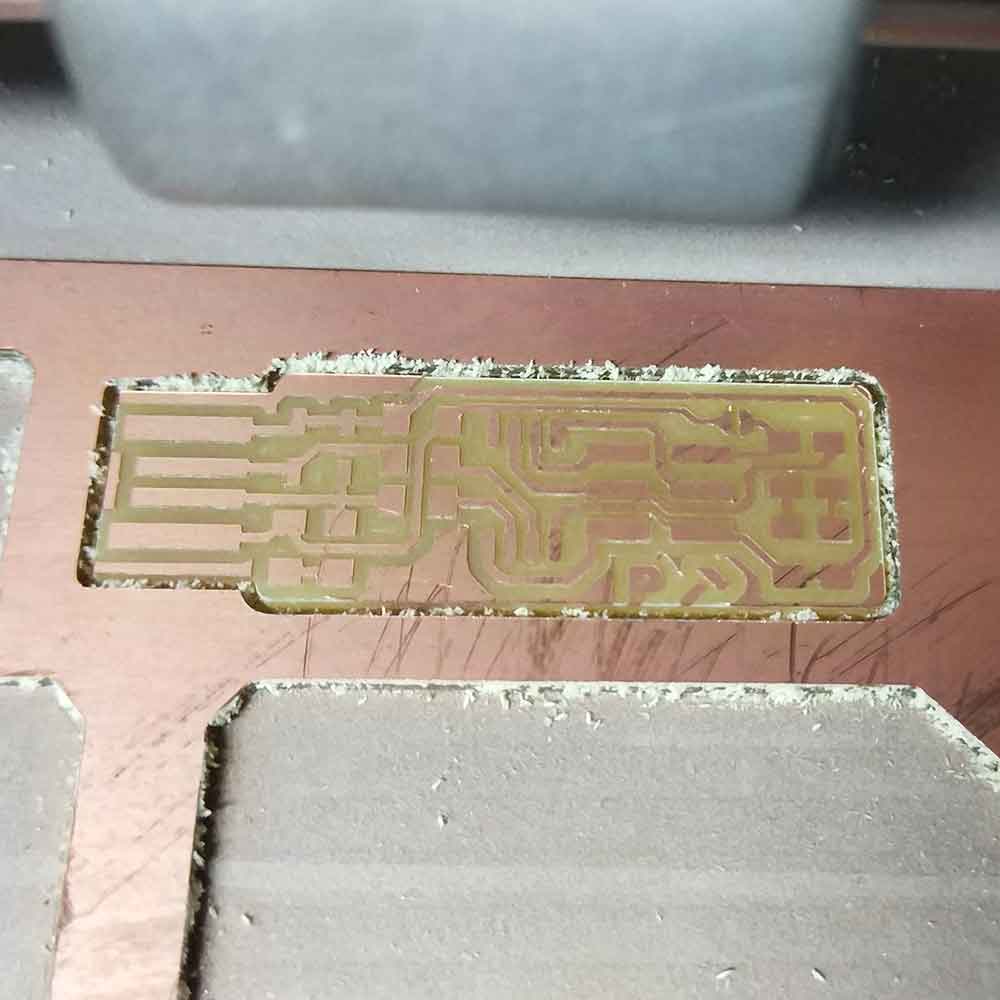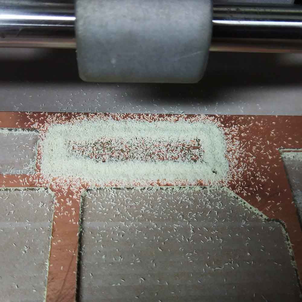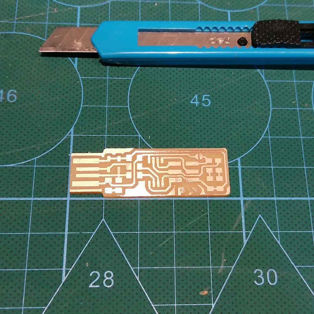 After the PCB is has been cut depending on you settings, there might be some traces of copper leftover on the USB contact, remove them using a knife: