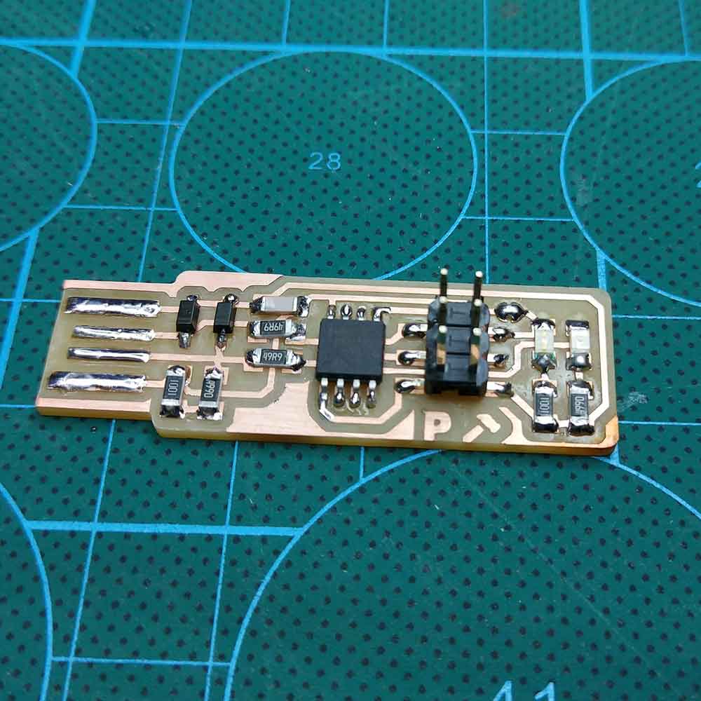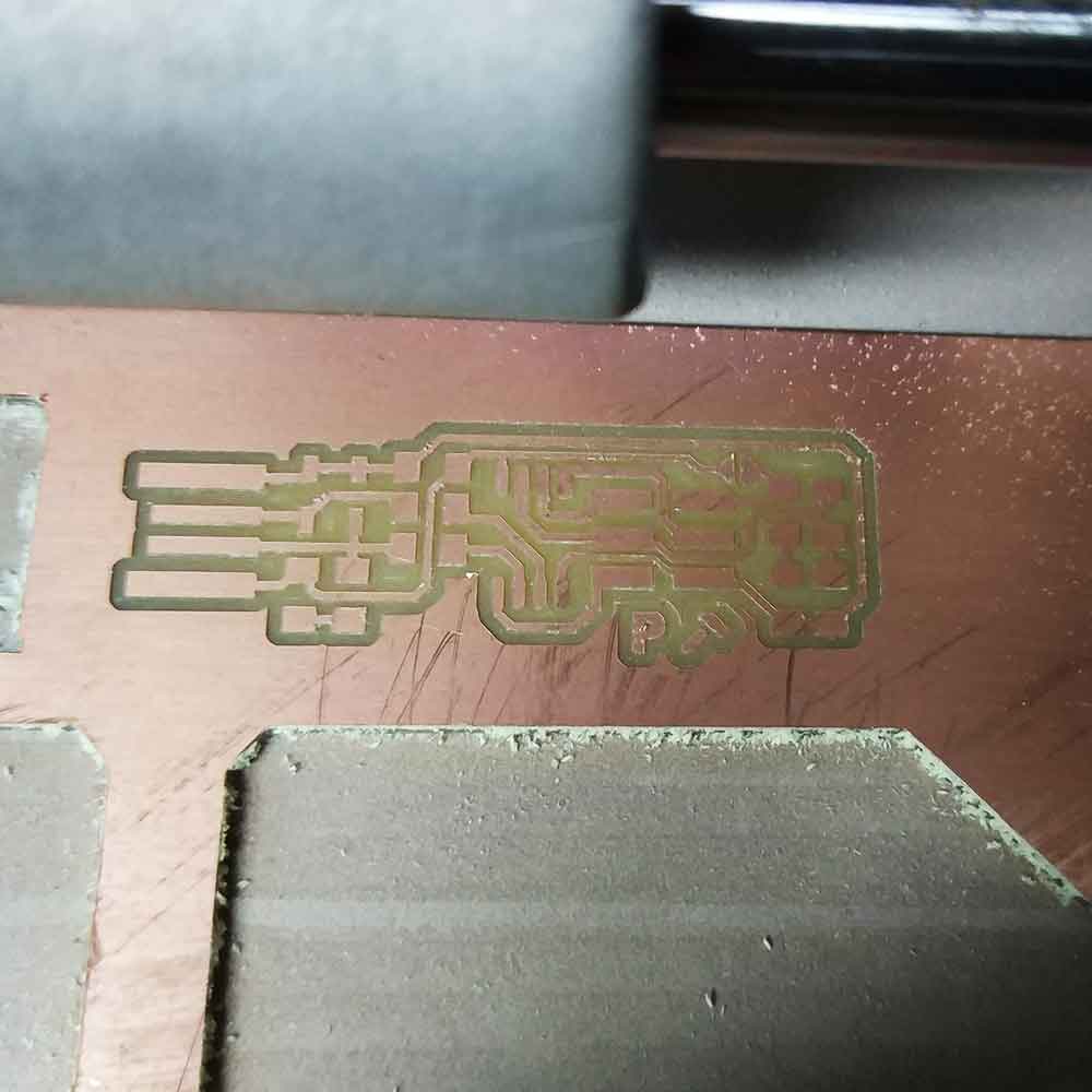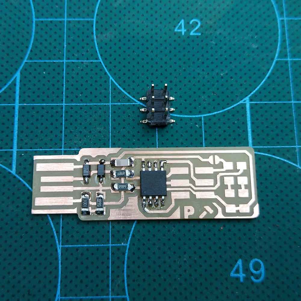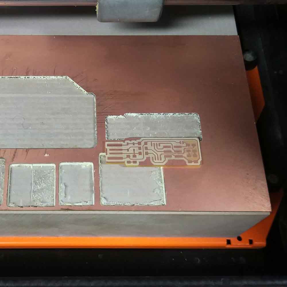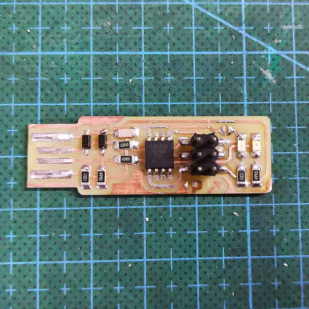 After the PCB is has been cut depending on you settings, there might be some traces of copper leftover on the USB contact, remove them using a knife:
