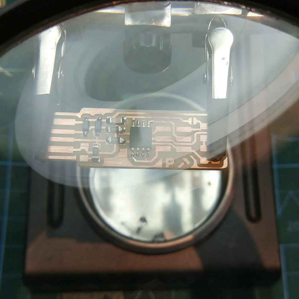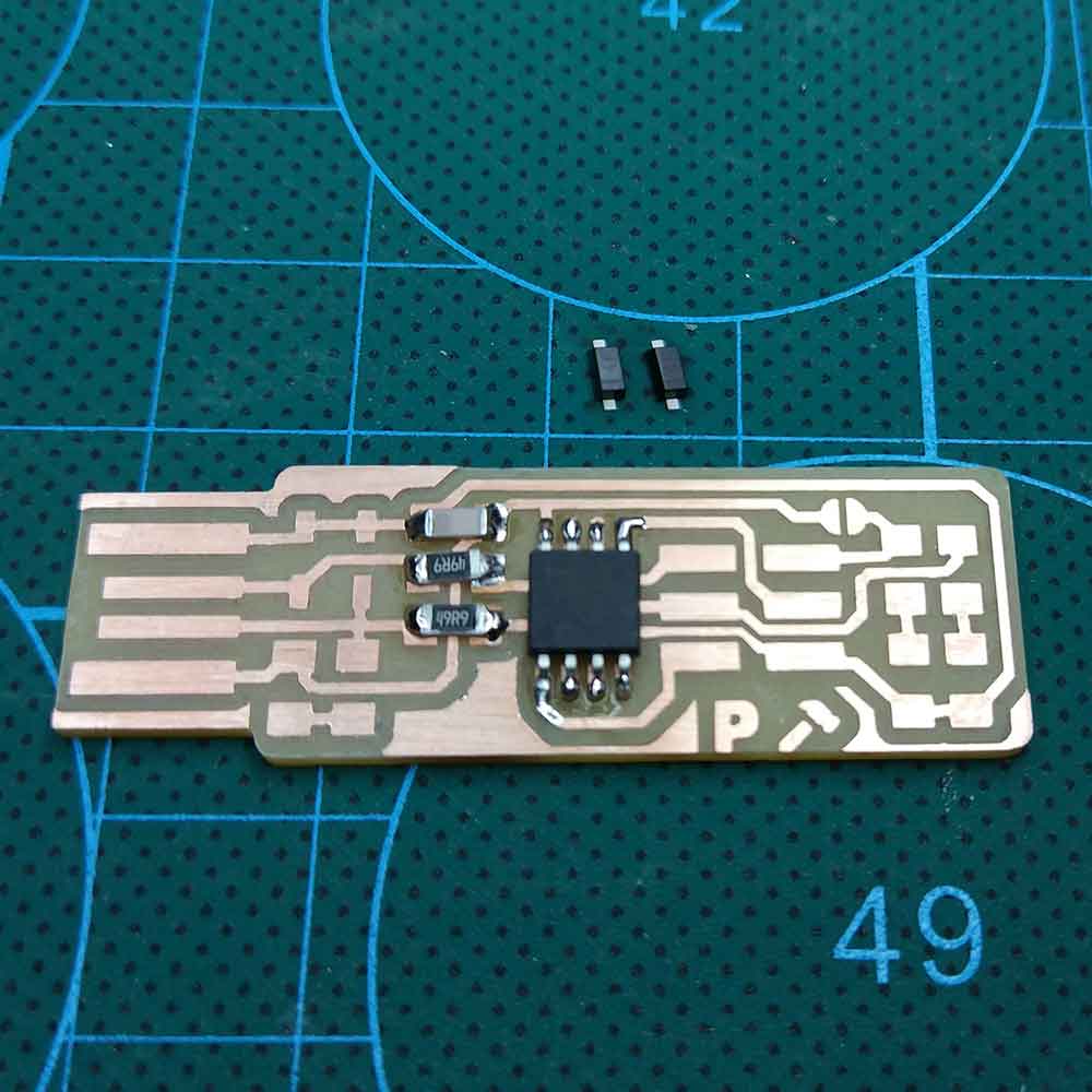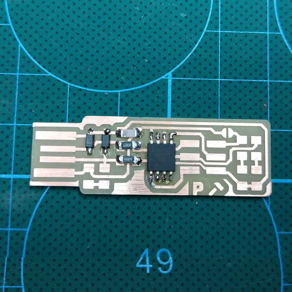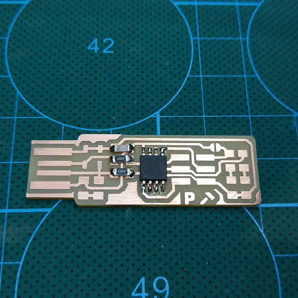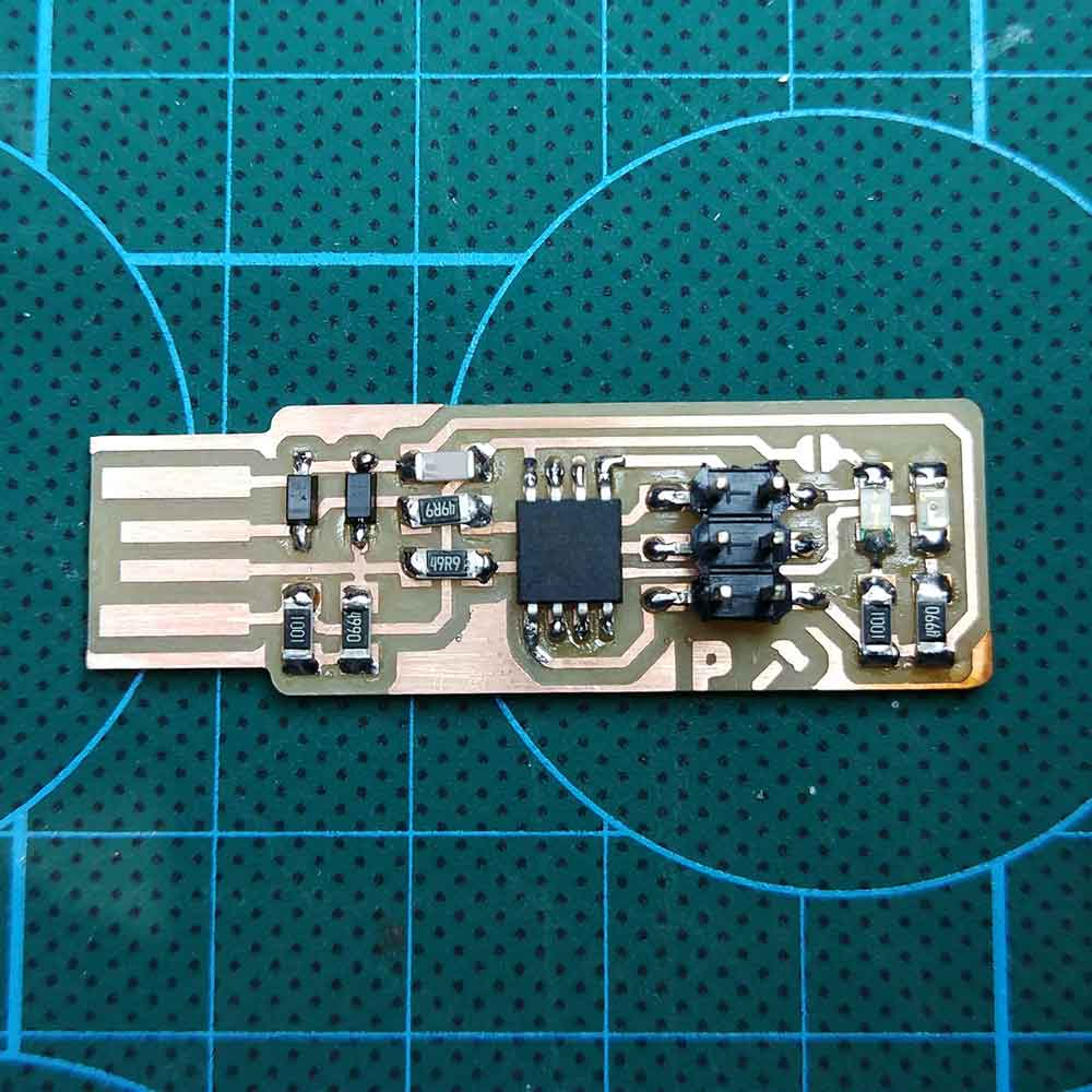 After the PCB is has been cut depending on you settings, there might be some traces of copper leftover on the USB contact, remove them using a knife: