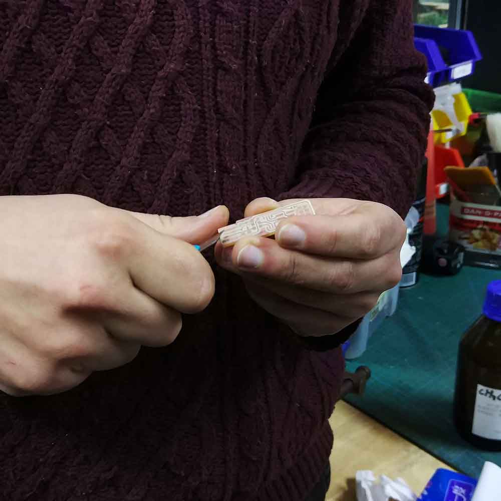 material we used for the PCB is a laminate sheet with a very thin layer of copper (microns of