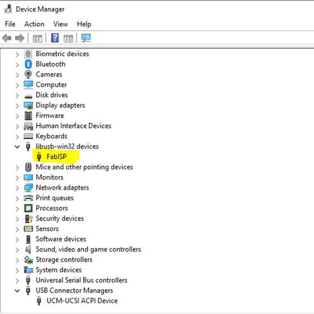 and reconnect the FabIsp and I checked inside Device Manager if it was detected.