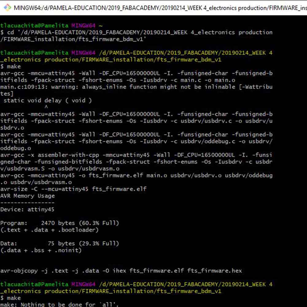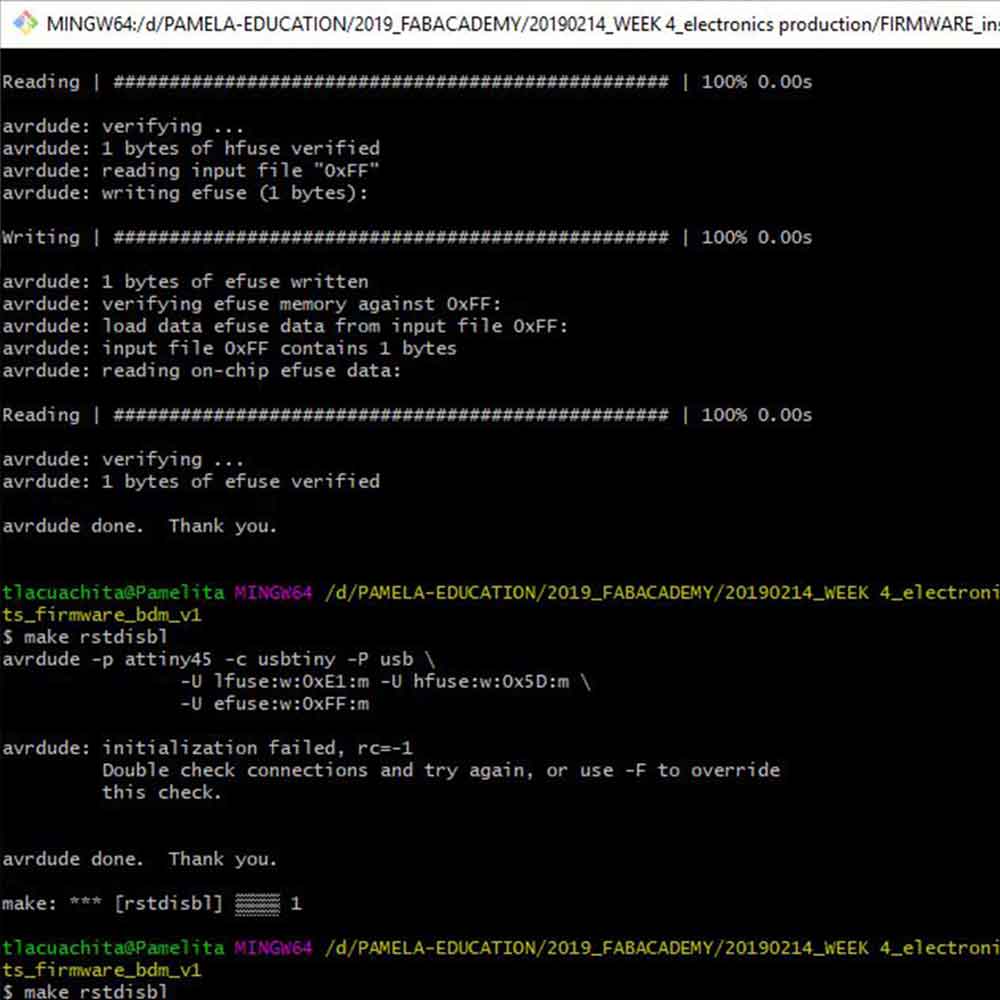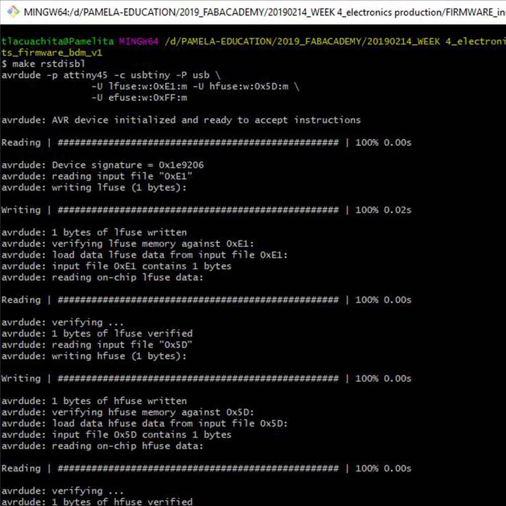 After this connect connect the programmer to your computer, open GITBASH and run: