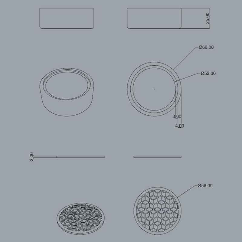 I built my model using Rhinoceros 3D. The minimum space I left between the objects was of 0.5mm and