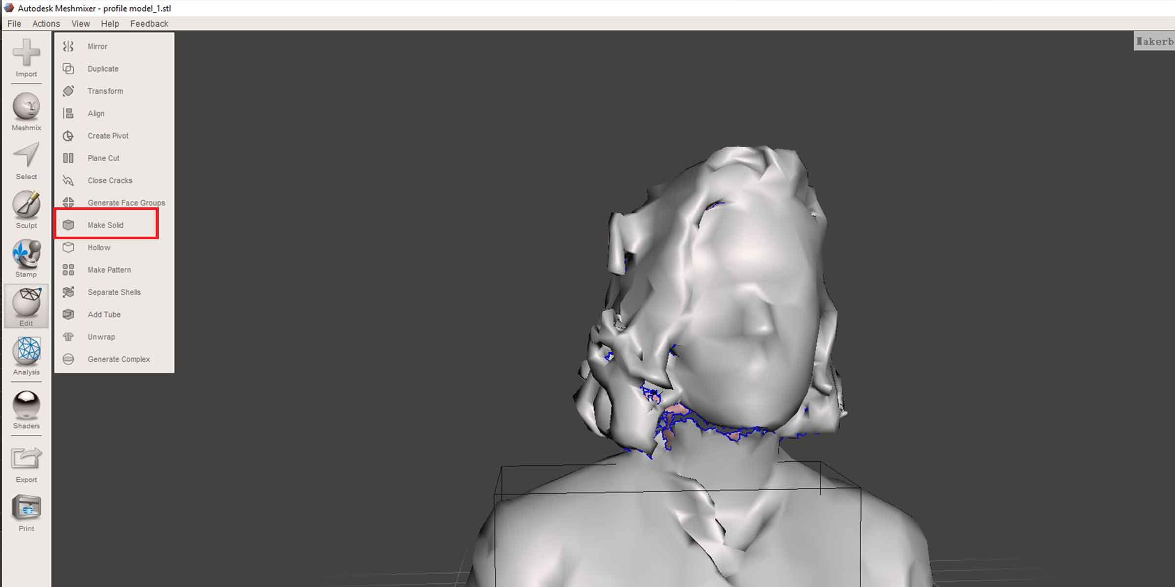 This is a great function of MESHMIXER because it will close all the open gaps your model has.