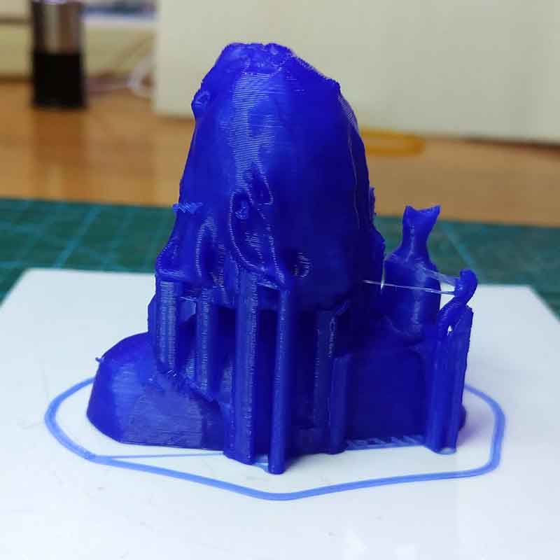 After this first attempt, I modified the CURA file and added supports to the model. And this was the final outcome: