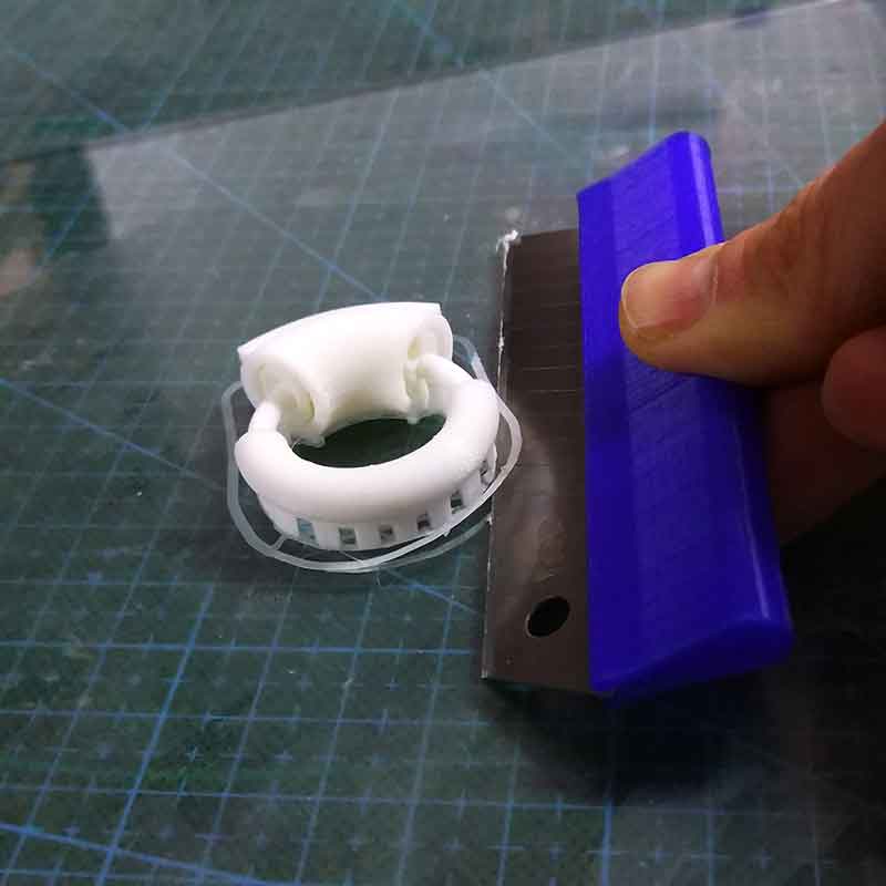 To remove the models from the printer bed we use a cutter knife, and I decided to build a handle and a