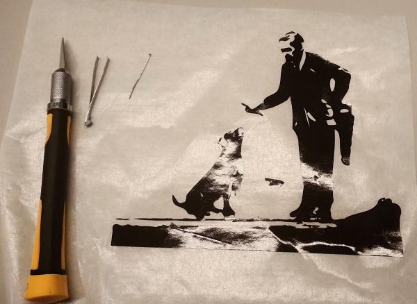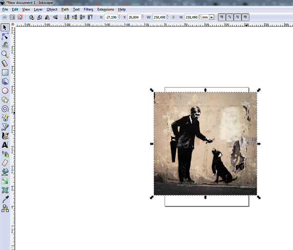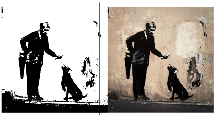 Fo vinyl cutting I decided to prepare something from a rester image. I chose a photo of a Banksys's graffity from my own collection.