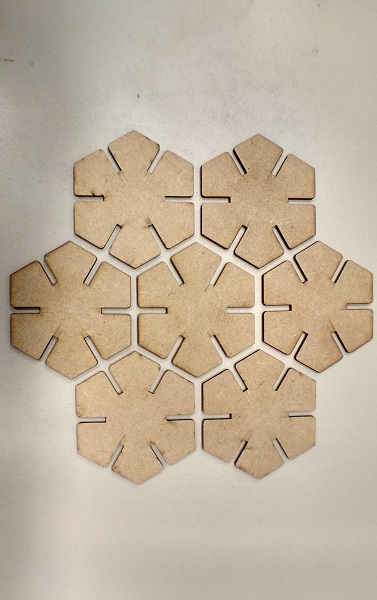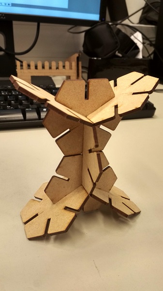 Then I created a drawing from the design and saved it as a PDF file (unmark lineweigth) for lasercutting. And I cut it from 3mm MDF on the Epilog Fusion M2 40 (75W). It was a perfect fit. Round corners of the joint helped to press one part into another. The connection was just right.
