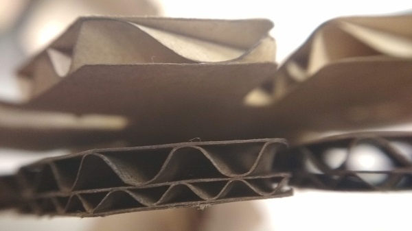 Then I found 4 mm cardboard. I changed the design by changing the parameters (kerf 0.4, material thickness 4mm, depth 15mm) and cut it as well.