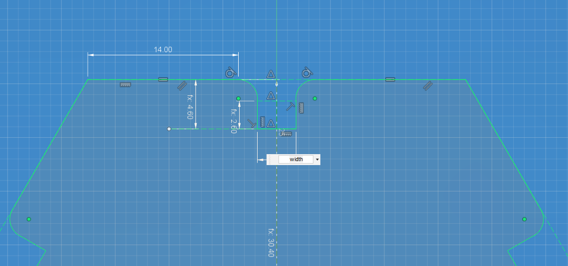 The constant values define the dimensions of the part. Width of the slot depends on the material thickness.