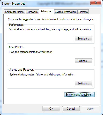 For finishing these tool installations, modify the Paths in order to tell Windows the locations of the tools. Go to Control Panel/System