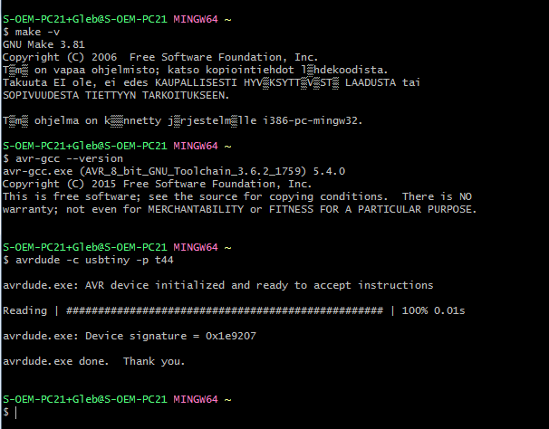 make -v avr-gcc --version avrdude -c usbtiny -p t45