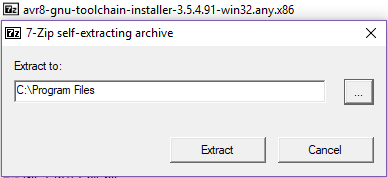 1) First of all, Install the Atmel AVR Toolchain for Windows from Atmel's site and ran the installer. Pay attention to extract the files to C:\Program Files.