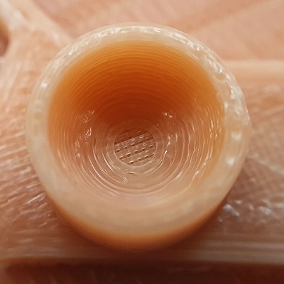 Technology: Fused Filament Fabrication (FFF), additive manufacturing process printing from bottom to top, layer-by-layer (each layer with each corresponding model material and support material).